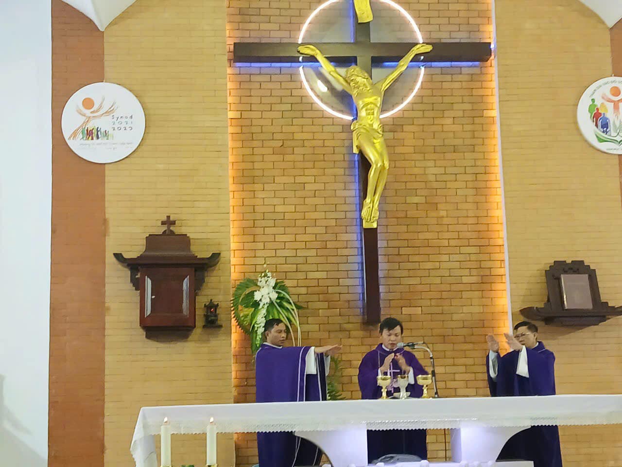 Thánh lễ chiều 30/8 – Lễ cầu cho các linh hồn qua đời trong đại dịch Covid do Cha Chánh Xứ Giuse làm chủ tế. Ðồng tế với Ngài có Cha Giuse Nhật (Tu đoàn Tông đồ Nhà Chúa) và Cha Giuse Tùng (Dòng Hiến Sĩ Đức Mẹ Vô Nhiễm).