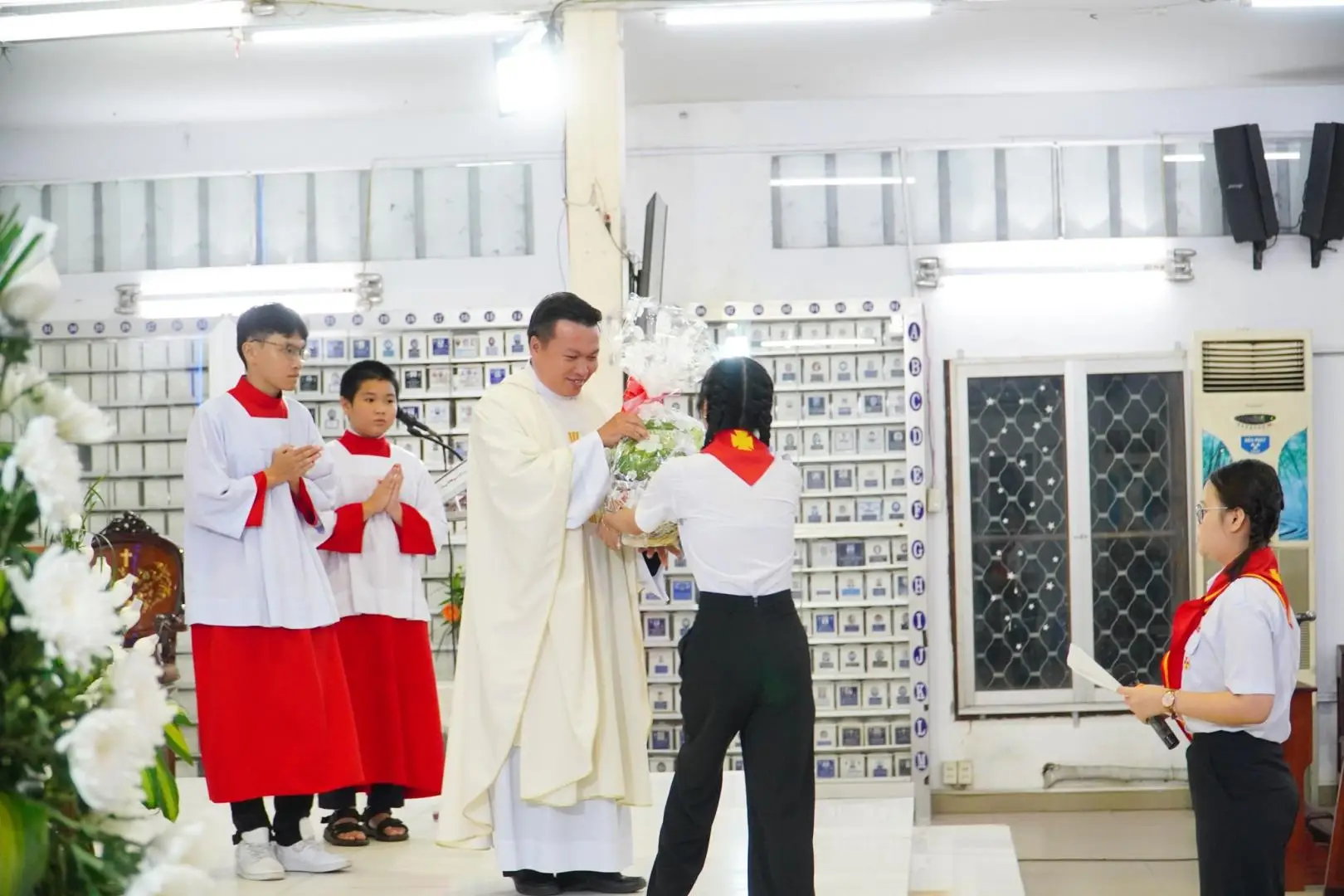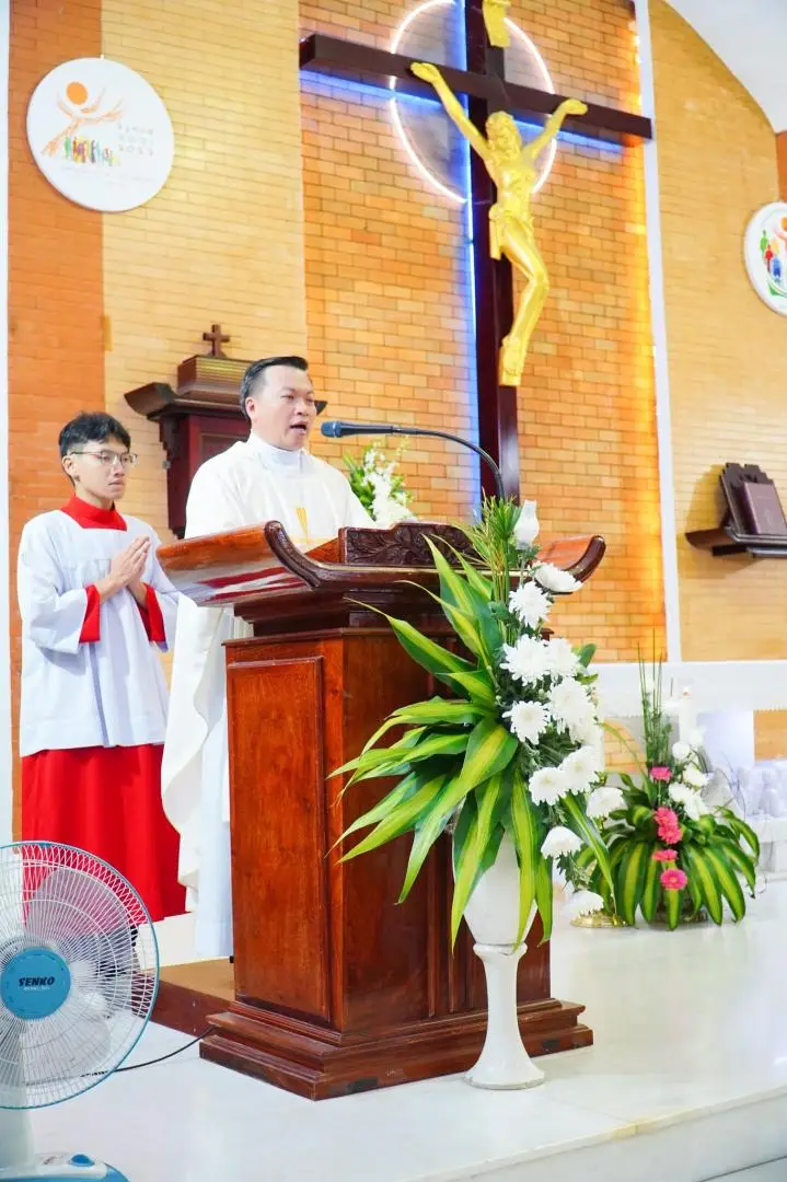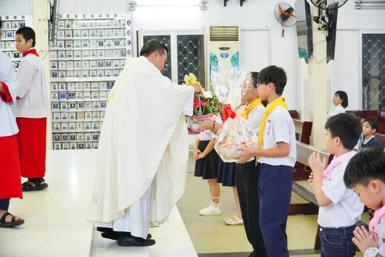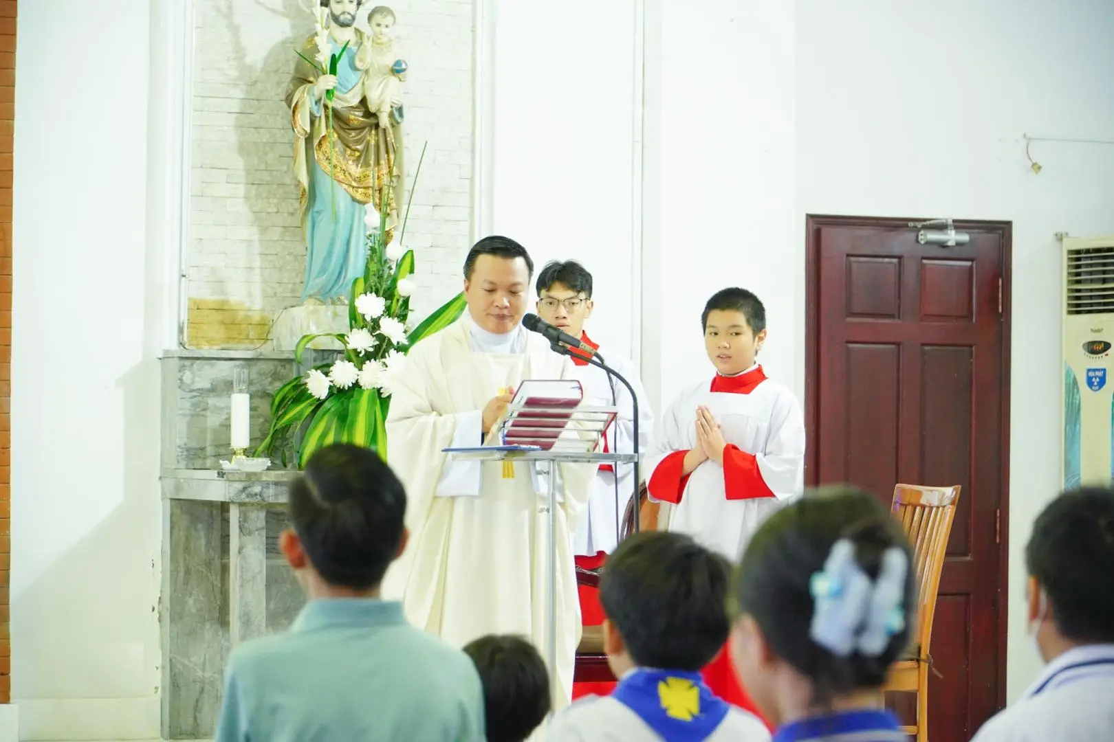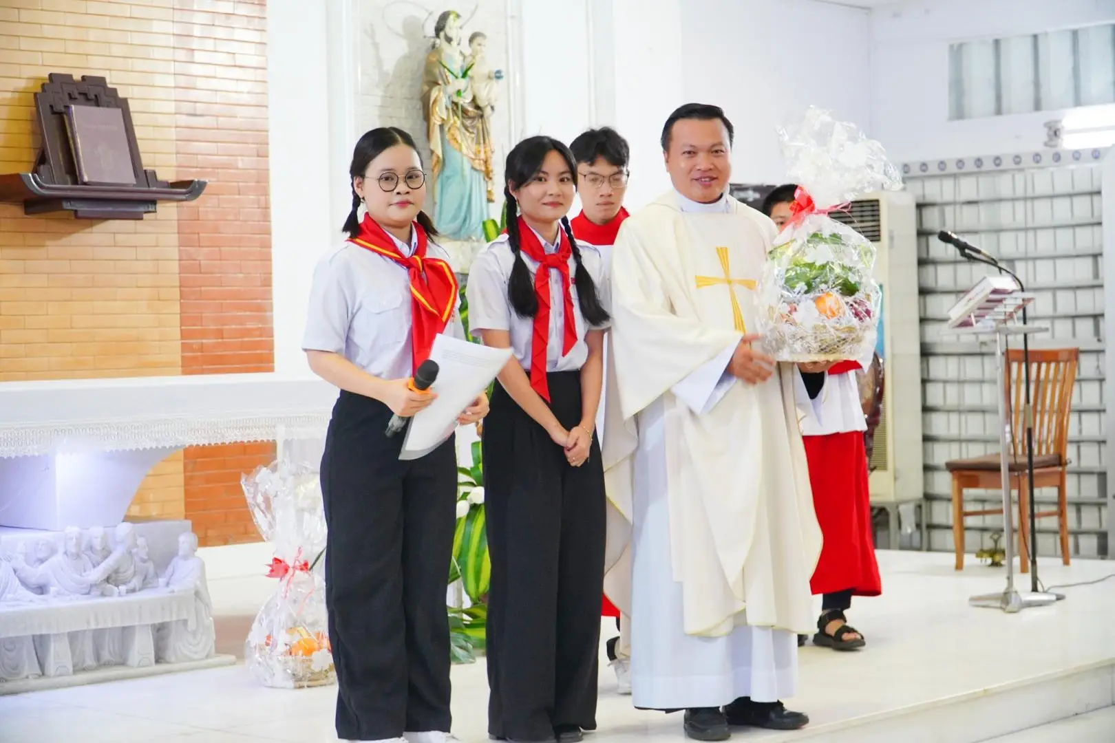 Cha Giuse khen ngợi, 25 ca viên hiện tại của ca đoàn Thiếu Nhi như 25 “Thiên Thần” trong sáng, đáng yêu của Giáo Xứ, luôn nổ lực tập luyện để mang lời ca, tiếng hát ca ngợi Thiên Chúa.