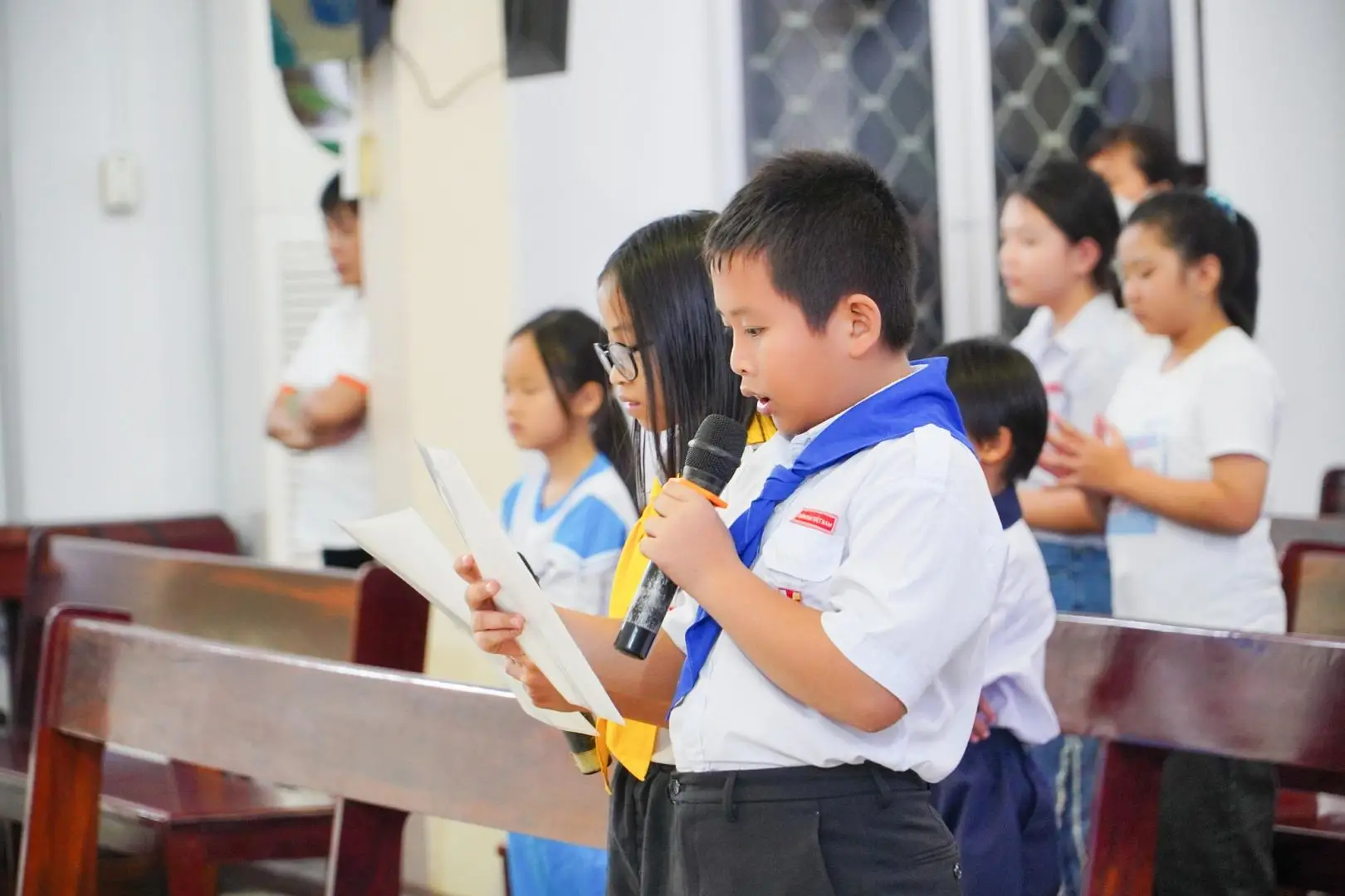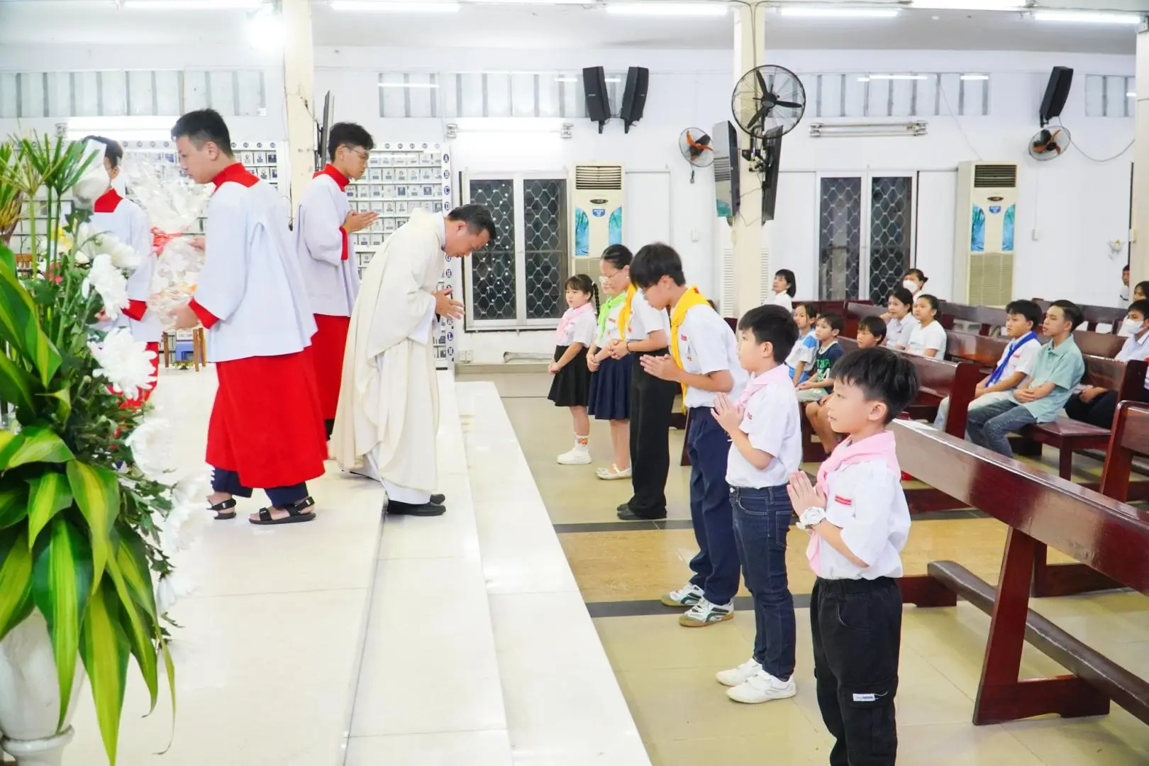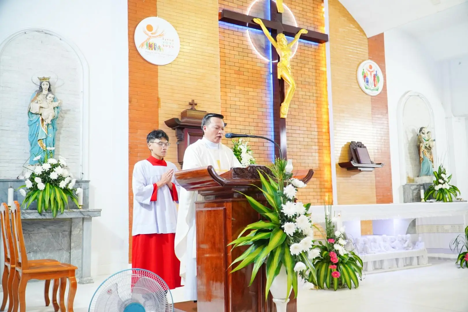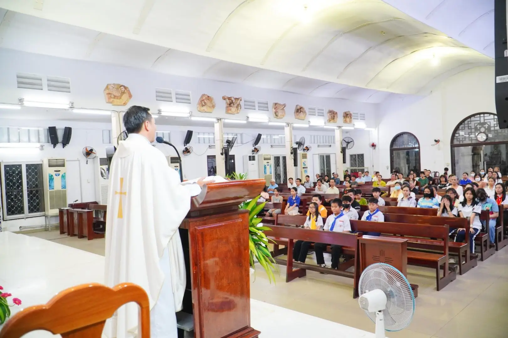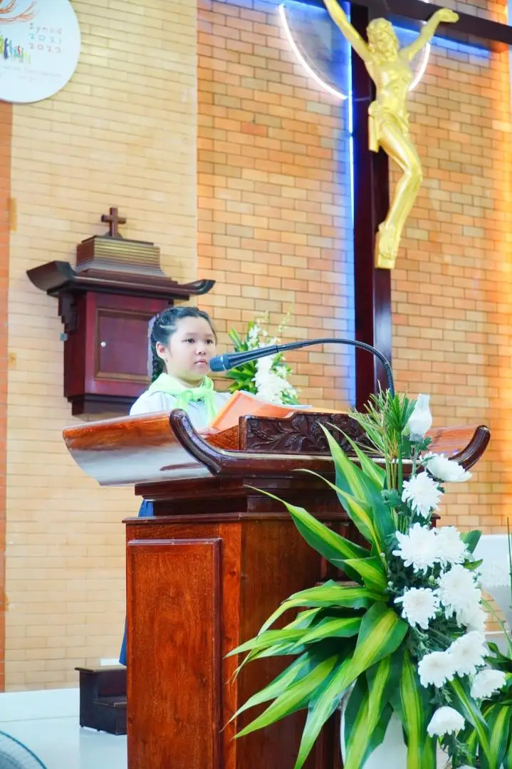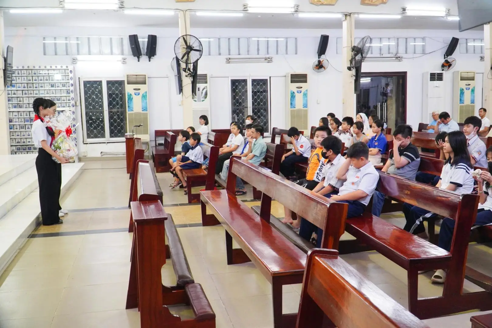 Cha Giuse khen ngợi, 25 ca viên hiện tại của ca đoàn Thiếu Nhi như 25 “Thiên Thần” trong sáng, đáng yêu của Giáo Xứ, luôn nổ lực tập luyện để mang lời ca, tiếng hát ca ngợi Thiên Chúa.